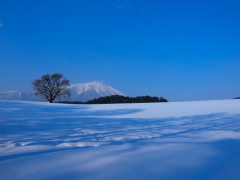 E-5 ZUIKO DIGITAL 14-54mm: F9 14mm 1/640 ISO200 雪の一本桜、清々しい。 タグ:OLYMPUS E-5, ZUIKO DIGITAL 14-54mm F2.8-3.5